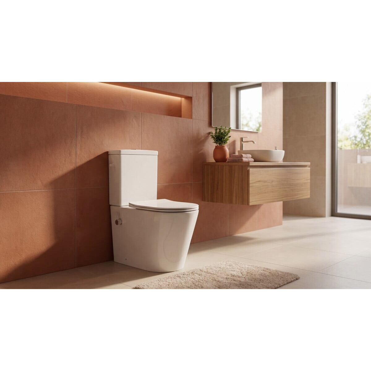 - Kombiniertes Stand-WC mit integriertem Bidet für mehr Hygiene