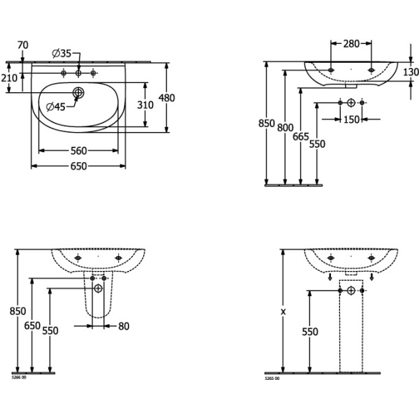 VILLEROY & BOCH O.NOVO Waschbecken oval, verschiedene Ausführungen
